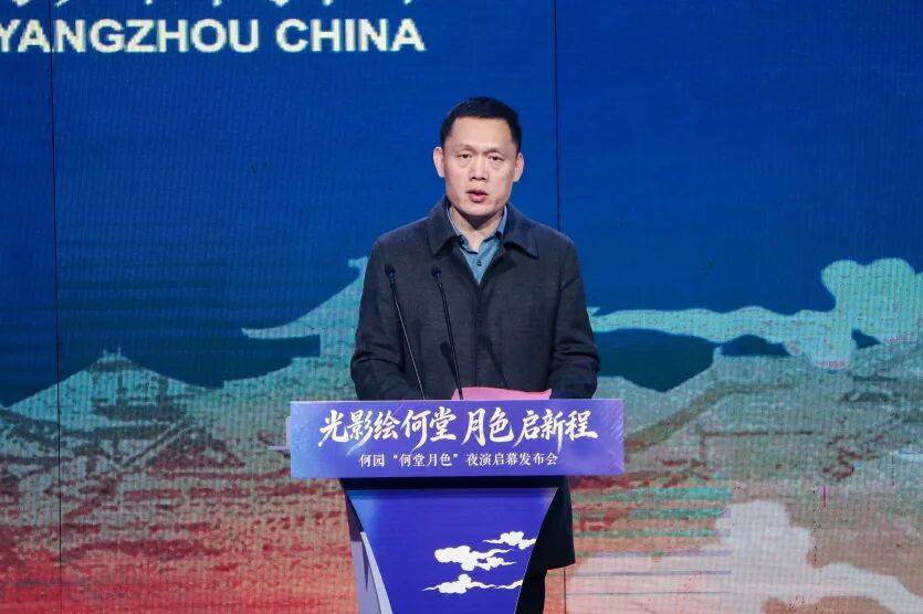 宣传片播放完毕,景区党工委委员、管委会副主任王青海上台致辞,高度评价“何堂月色”夜演项目,称其将为扬州文旅产业高质量发展增添新亮点、注入新动能。
