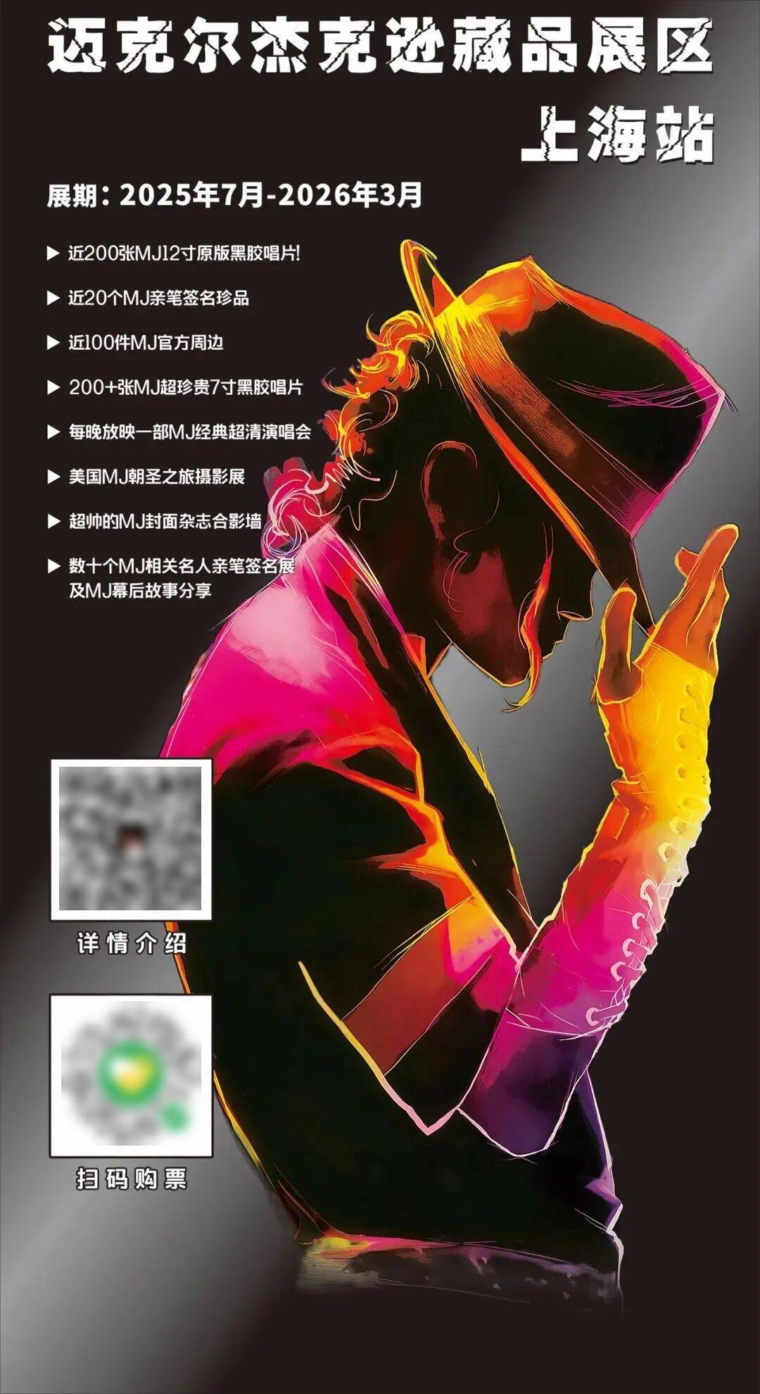 迈克尔杰克逊藏品全球巡展+索尼影展上海站正在火热进行中!购票请扫以下二维码!购票后加小编微信MJJCLUB0829预约参观时间,我们将安排资深粉丝讲解藏品!