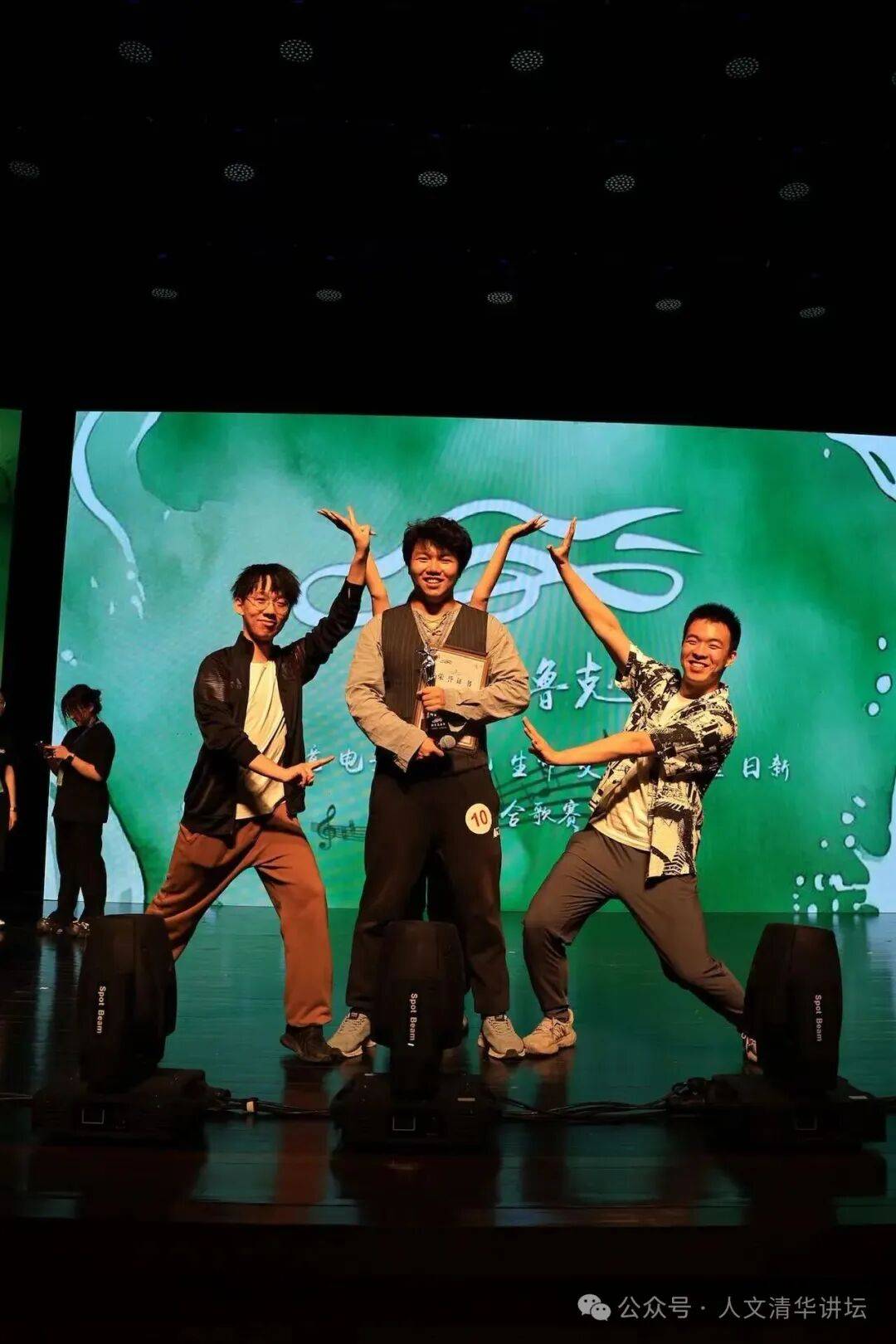 清华大学化学系博士新生唐汪宇达作为“十佳歌手”之一,正在选手区和舞台间不断切换。这是他在清华的第五年,也是他参加校歌赛的第五年。本科四年,他一直热爱唱歌,也在校园大大小小的舞台上唱过歌,但每次参加校歌赛的激烈角逐,总是仅仅止步初赛。