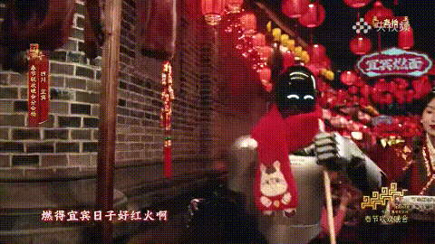 春酒一台的年俗嘉年华,机器熊猫与非遗艺人相映成趣,人形机器人复刻捞燃面、倒春酒的市井日常,尽显宜宾人鲜活的生活态度。