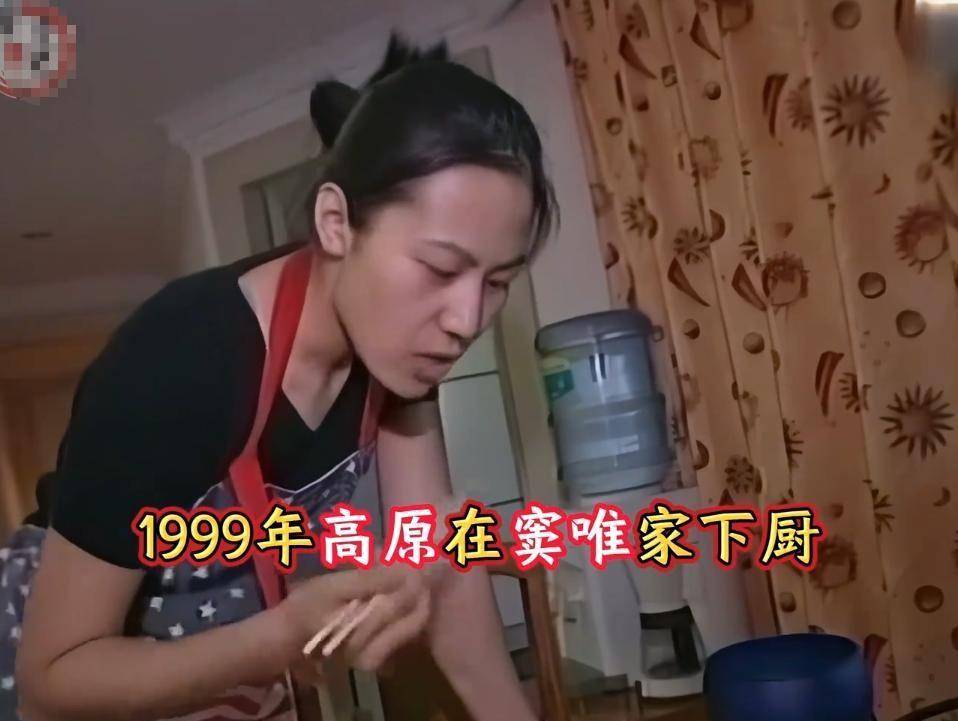 后来有记者拍到她在厨房里忙活的模样:一条不太合身的围裙系着,拿着铲子笨手笨脚地炒着西红柿炒蛋。